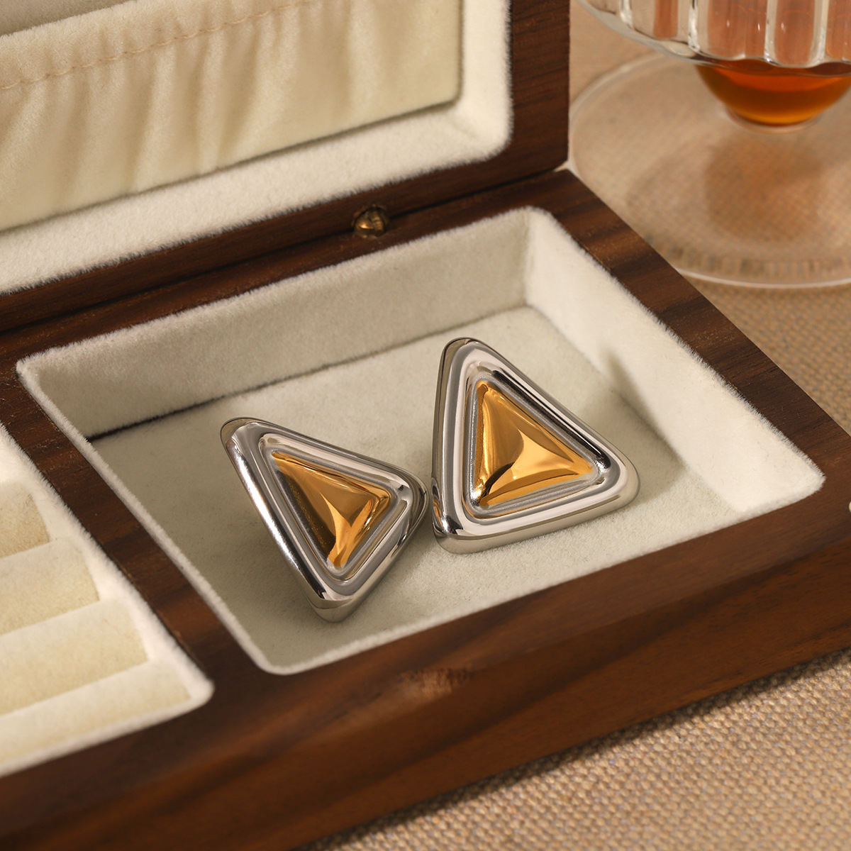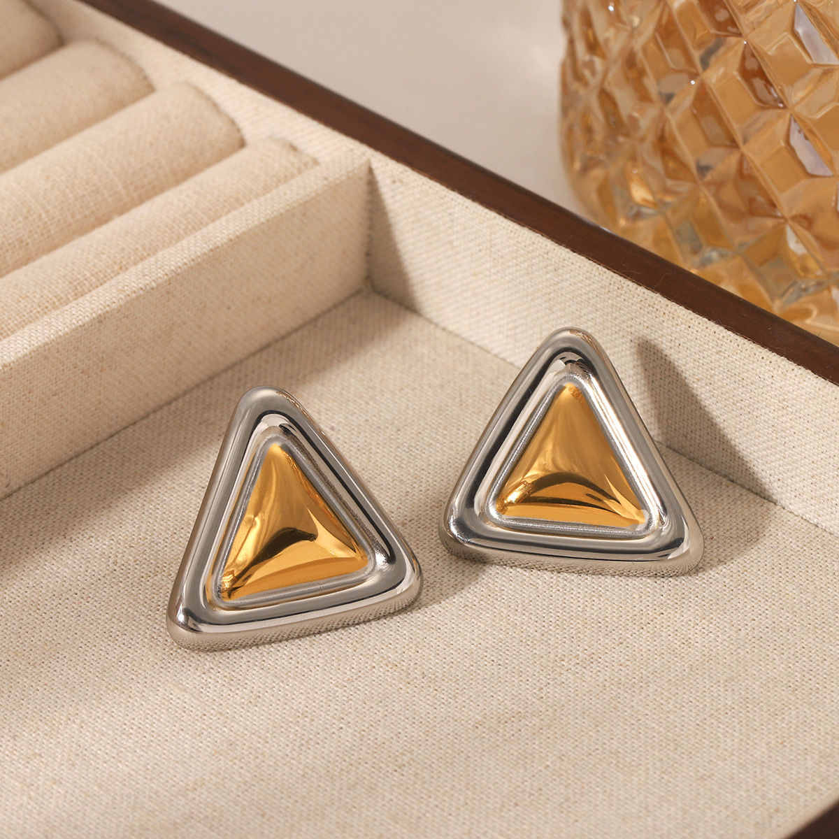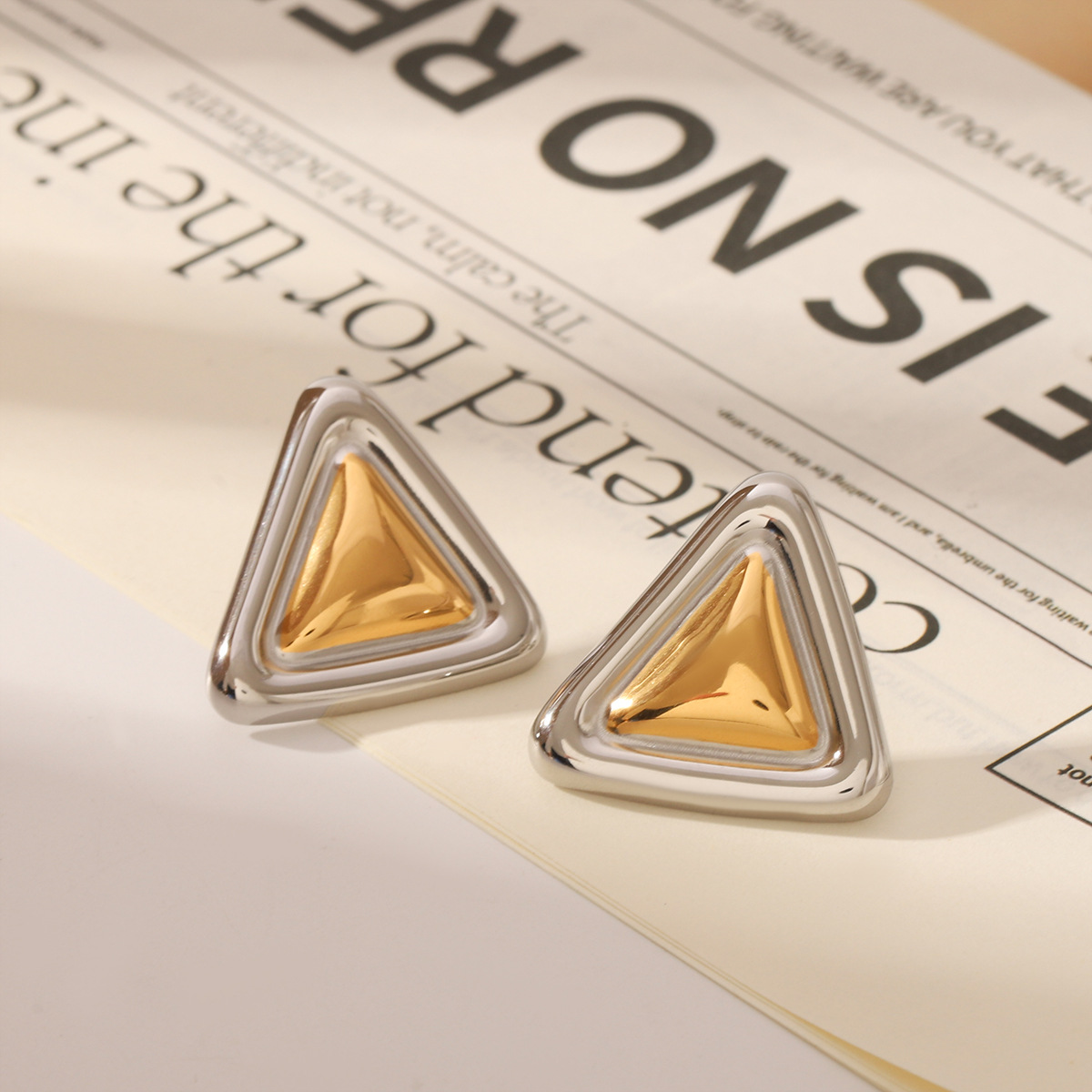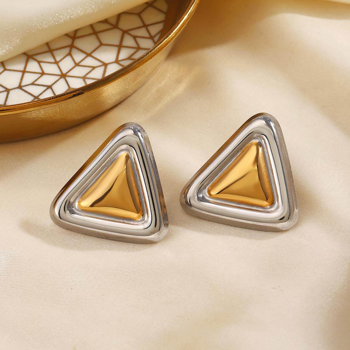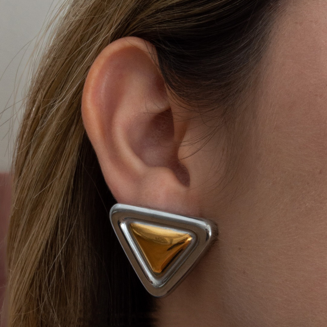 Dual Tone Triangle Earrings